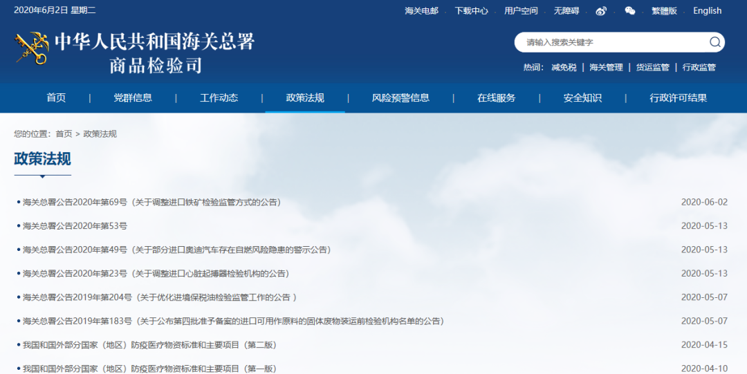 海关总署网址:http://sjs.customs.gov.cn/sjs/zcfg56/index.html